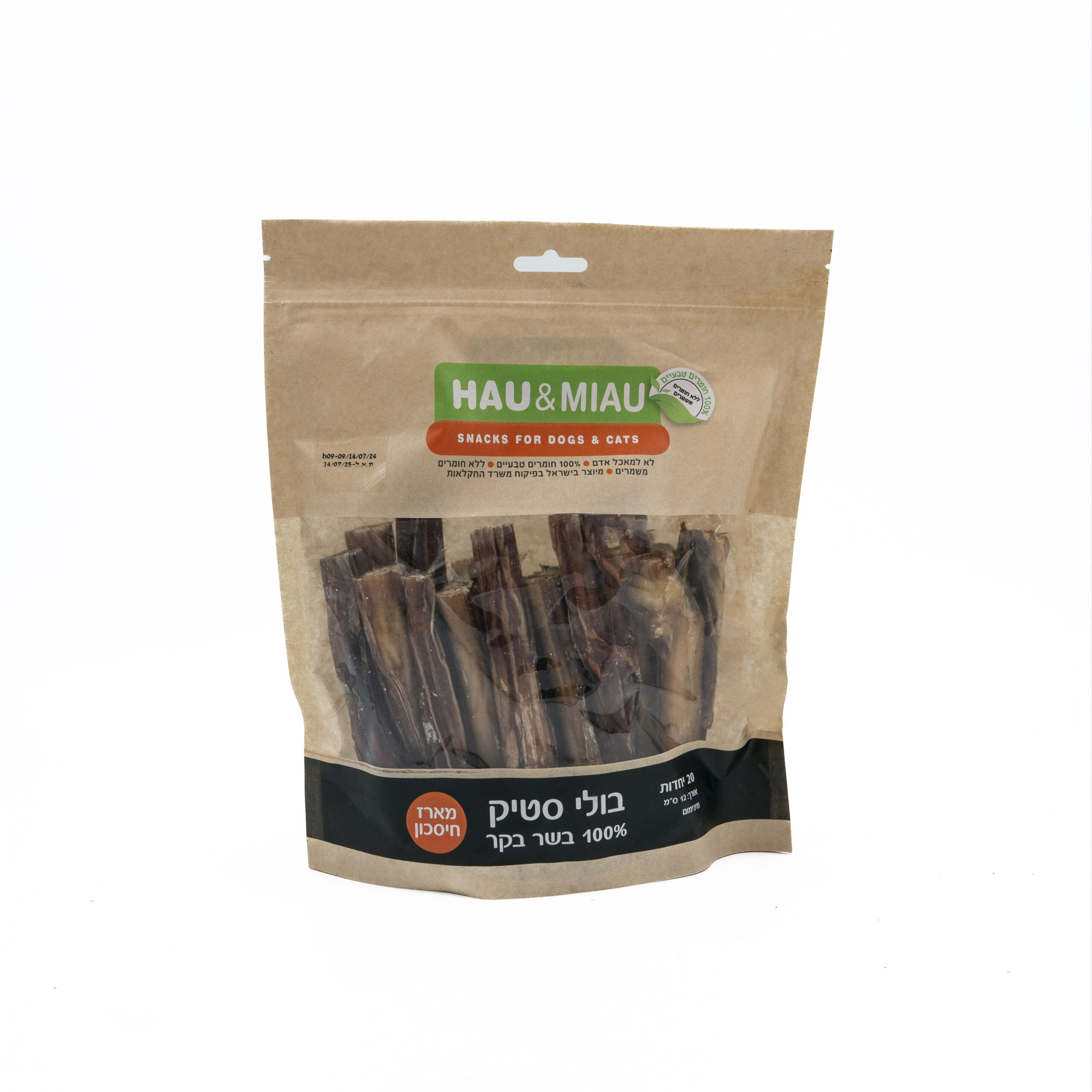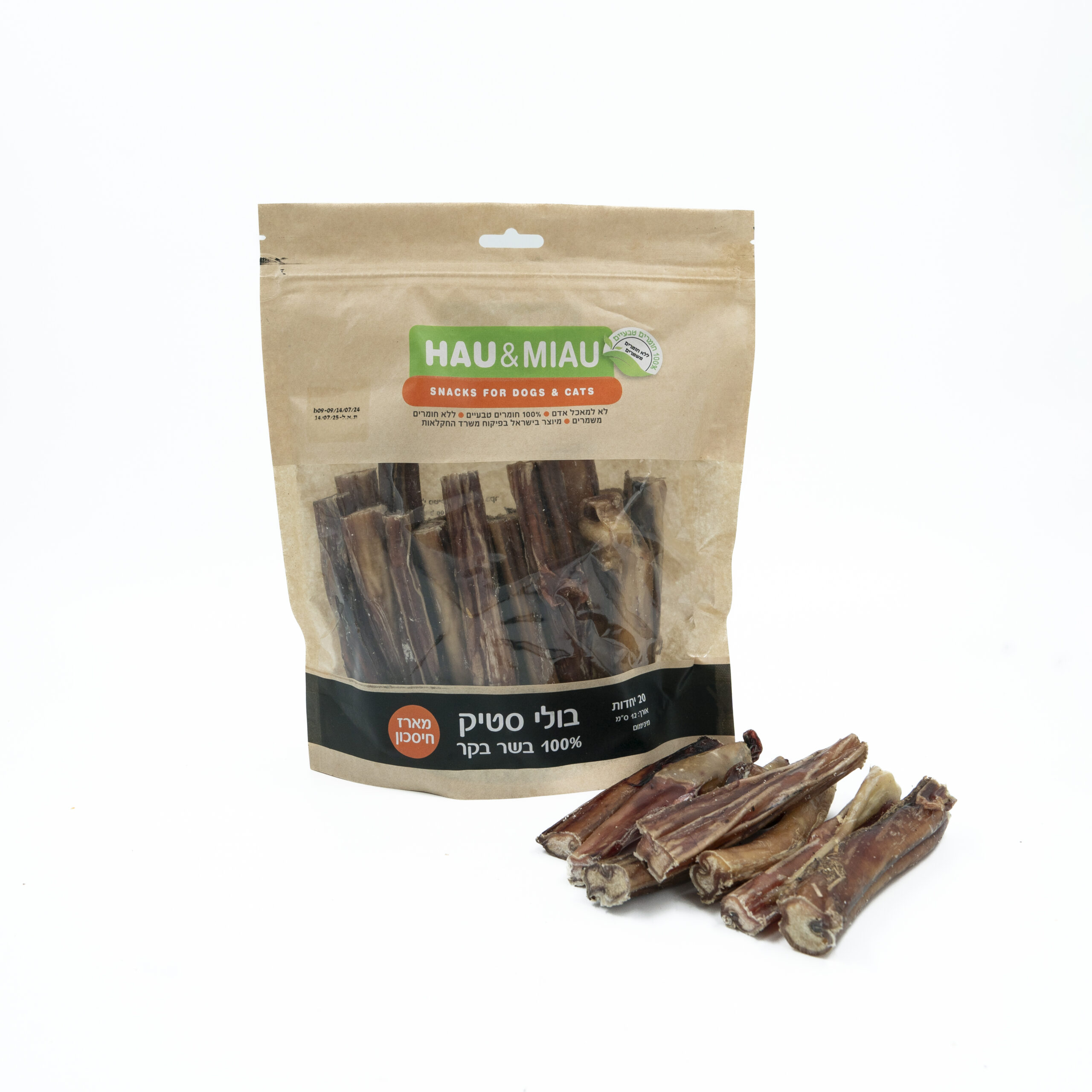 חטיף טבעי ובריא לכלבים וחתולים – בולי סטיק בקר מיובש 3 יחידות 15ס"מ